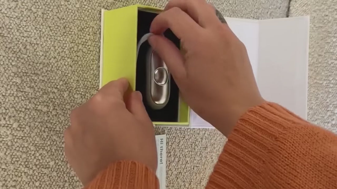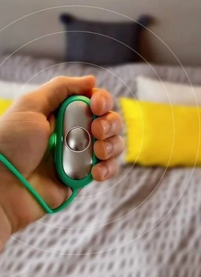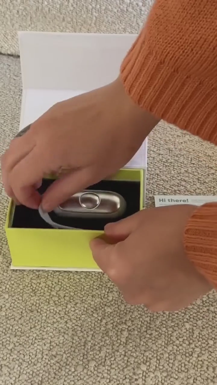 Calmi is a handheld wellness device that uses gentle microcurrent pulses to stimulate the PC8 acupressure point in the palm. It's designed to promote natural relaxation, reduce daily stress and anxiety, and encourage a more peaceful bedtime.